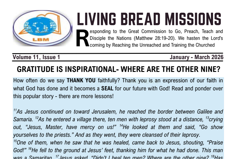 Gratitude Is Inspirational — Living Bread Missions Newsletter (January–March 2026) Read Post »